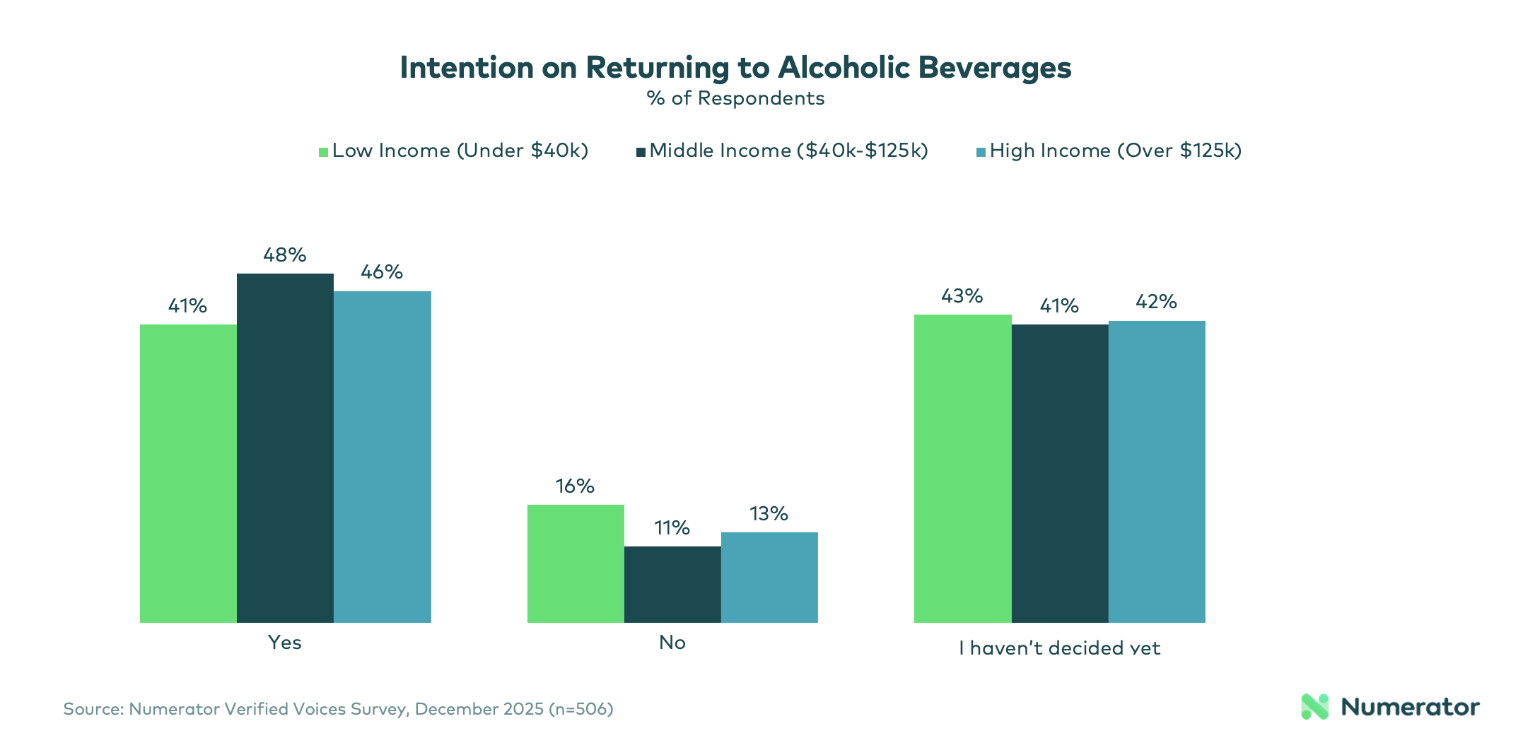 Additionally, 13% plan to cut back on alcohol even after January and 42% undecided about returning. Brands that fail to engage these consumers during and after Dry January risk losing long-term share as habits evolve.