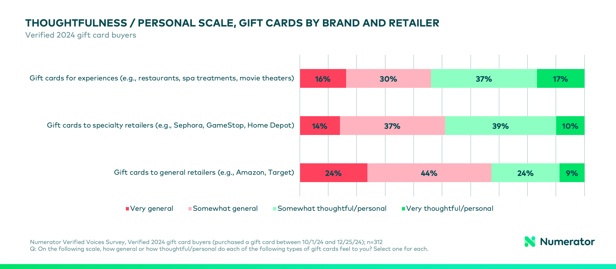 Among the wide range of gift card types available in stores and online, shoppers have clear perceptions about what feels meaningful: