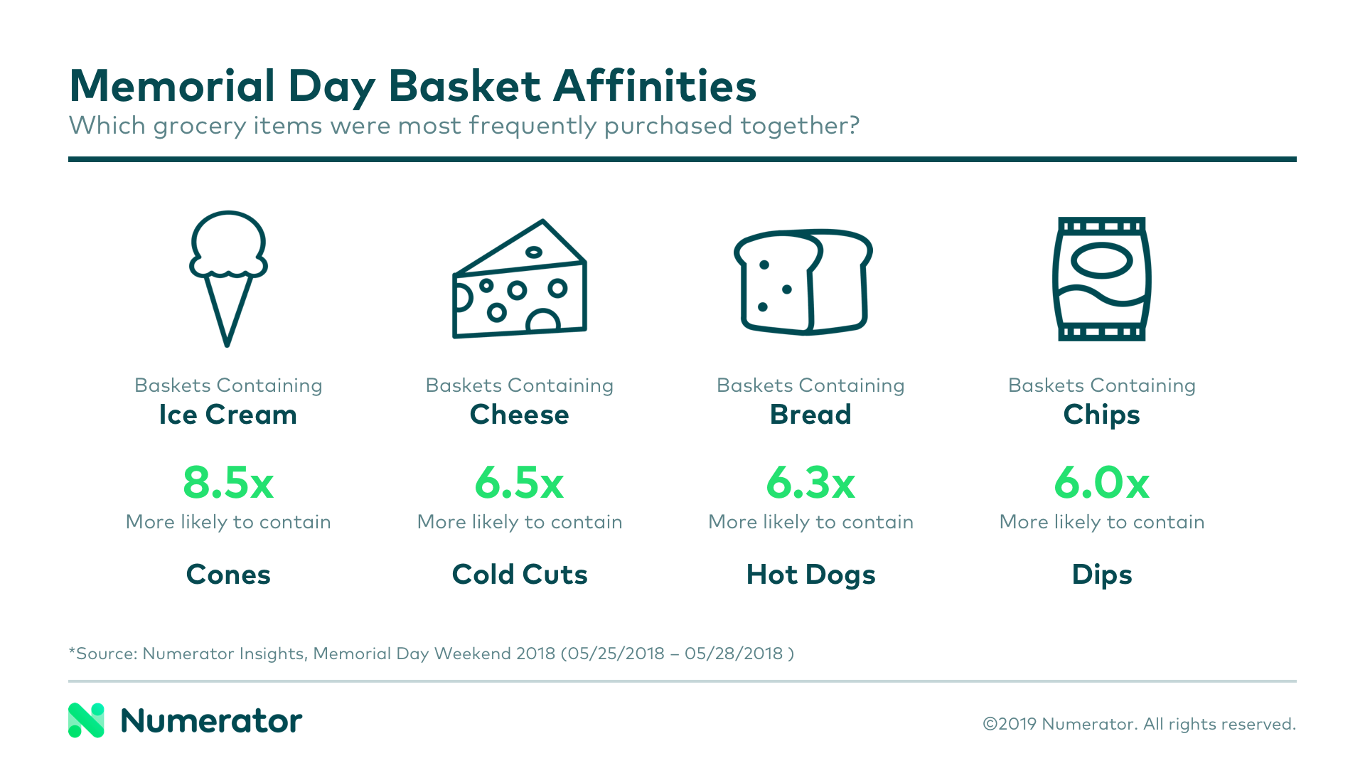 Ice cream cones, hot dogs, cocktail mixers and canned beans— classic components of a backyard BBQ— all experienced more than their fair share of sales Memorial Day weekend 2018 compared to the rest of the summer. To venture beyond these predictable sales boosts, we profiled the “Memorial Day Meat Buyer” and broke down grocery baskets throughout Memorial Day weekend.